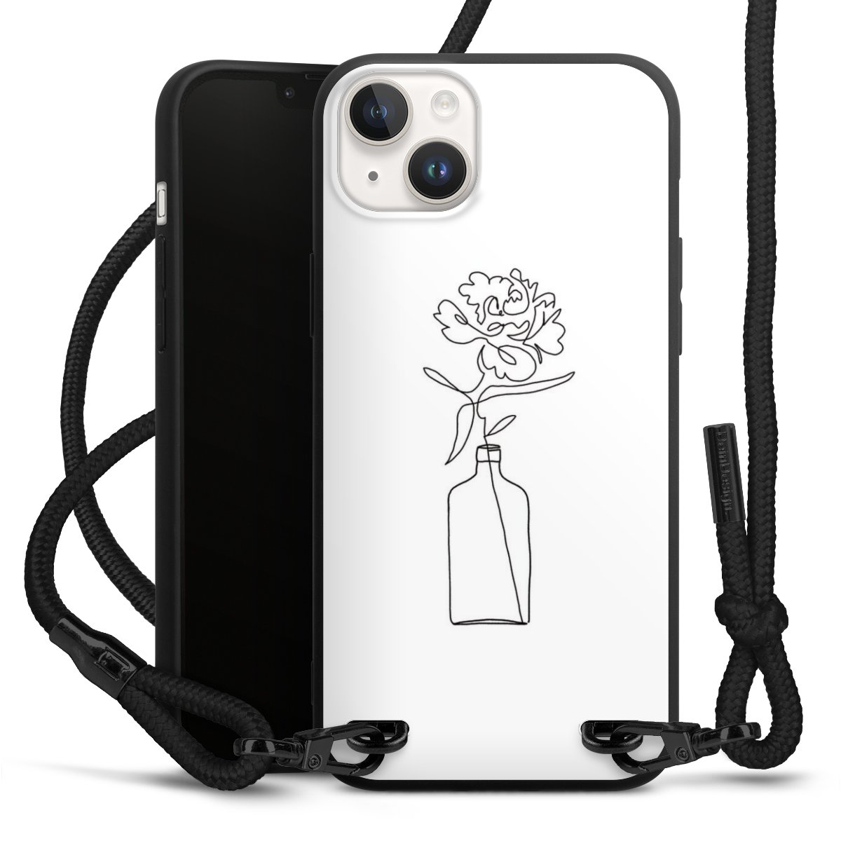 The matt black silicone case is made of flexible TPU (thermoplastic polyurethane) and offers robust protection. The durable, unbreakable material makes the cover flexible and dimensionally stable at the same time. The matte surface makes your design stand out more and is less susceptible to fingerprints and dirt. The stylish trend accessory fits comfortably in the hand and is perfectly complemented by the fabric (polyester) mobile phone strap. The braided fabric strap is approx. 1.70 metres long with a diameter of approx. 0.5 cm. Due to the special knotting technique, the length of the strap can be adjusted by simply pulling it, so that you can adapt it individually to your wishes. The practical case to wear around your neck is available with the fabric strap in black. As a little icing on the cake, we have provided the strap with a chic metal fastener in matt black. The strap is securely fastened to the case with loops made of high-quality genuine leather and press studs. The ends of the fabric strap are covered with metallic end caps and thus protected from fraying.