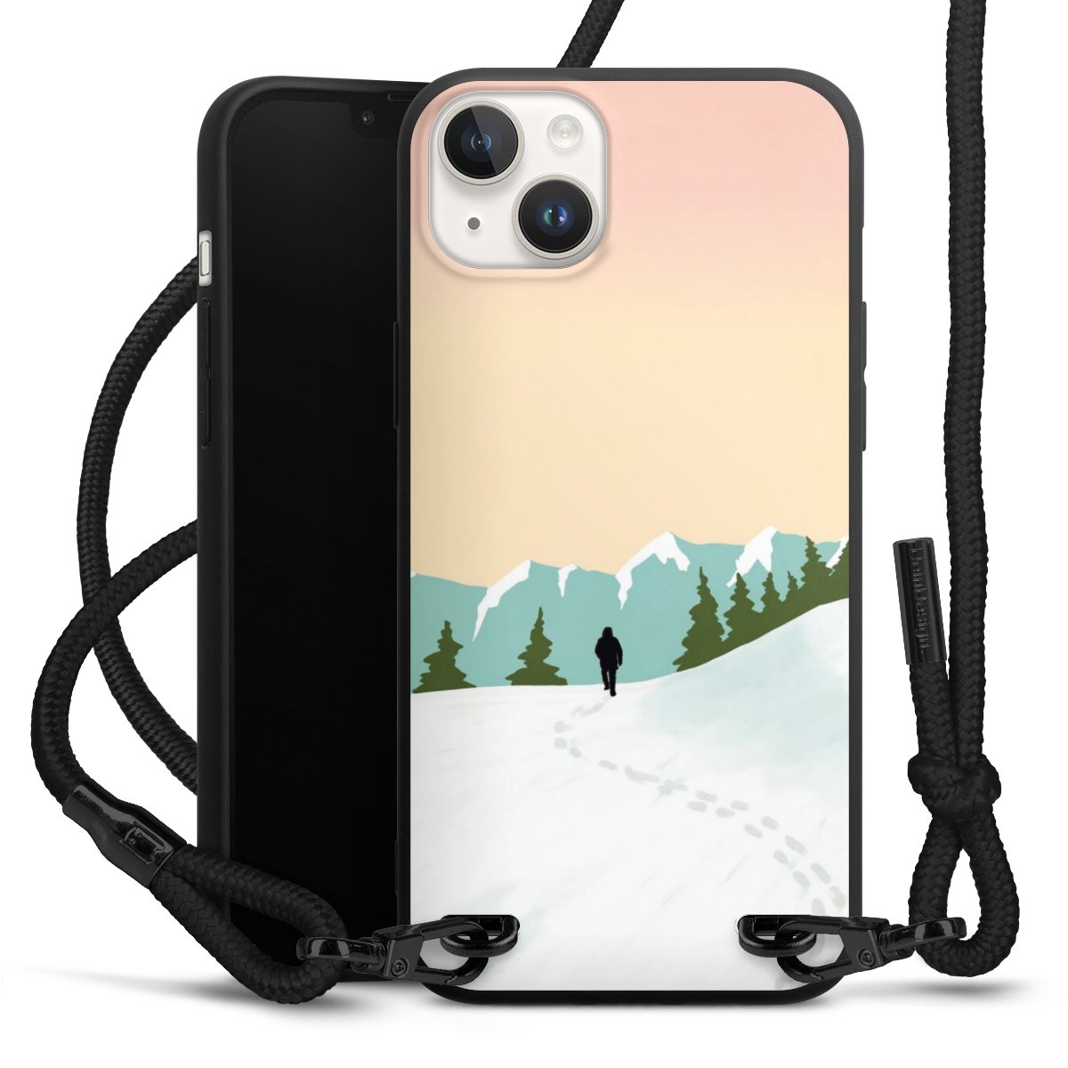 We use the solid direct print process for this phone case, which is why the print area only covers the back and the edge remains unprinted. The case to wear around your neck can be ordered unprinted, fully printed, or partially printed. For your design, either choose one of our exclusive shop motifs or get creative and create your own design, for example with photos and overlays. Design your own personal trend accessory and make an individual statement on the streets!