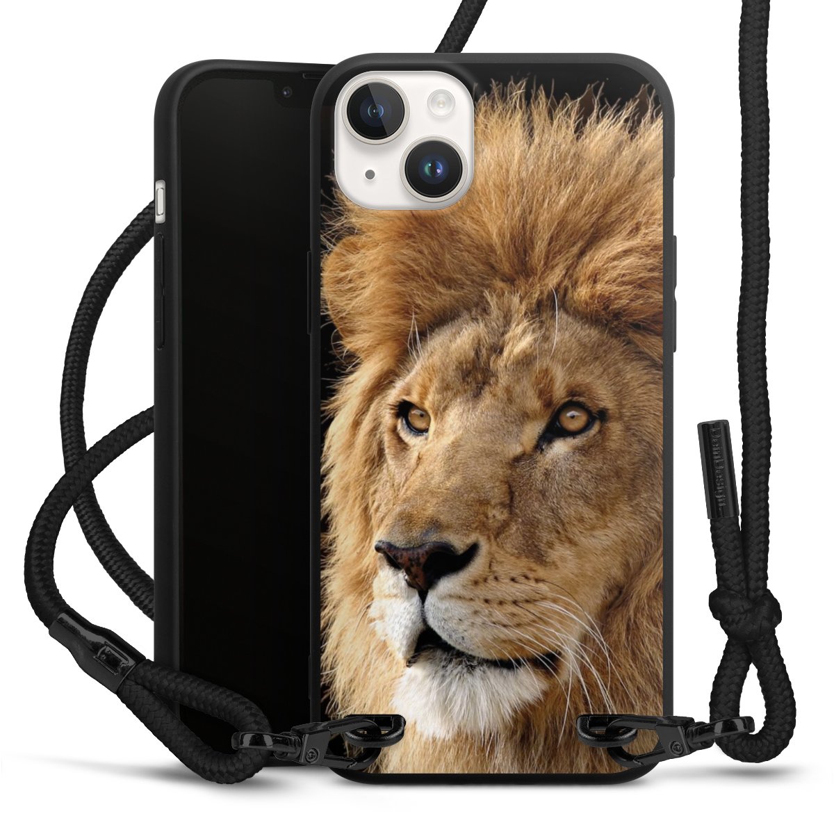 The matt black silicone case is made of flexible TPU (thermoplastic polyurethane) and offers robust protection. The durable, unbreakable material makes the cover flexible and dimensionally stable at the same time. The matte surface makes your design stand out more and is less susceptible to fingerprints and dirt. The stylish trend accessory fits comfortably in the hand and is perfectly complemented by the fabric (polyester) mobile phone strap. The braided fabric strap is approx. 1.70 metres long with a diameter of approx. 0.5 cm. Due to the special knotting technique, the length of the strap can be adjusted by simply pulling it, so that you can adapt it individually to your wishes. The practical case to wear around your neck is available with the fabric strap in black. As a little icing on the cake, we have provided the strap with a chic metal fastener in matt black. The strap is securely fastened to the case with loops made of high-quality genuine leather and press studs. The ends of the fabric strap are covered with metallic end caps and thus protected from fraying.