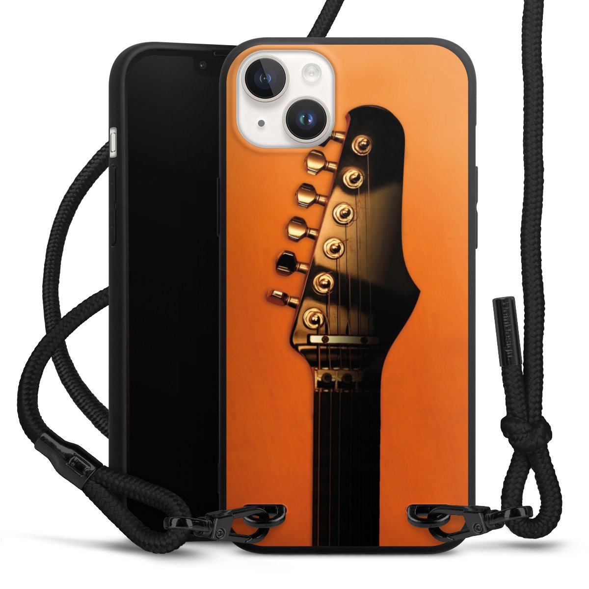 The matt black silicone case is made of flexible TPU (thermoplastic polyurethane) and offers robust protection. The durable, unbreakable material makes the cover flexible and dimensionally stable at the same time. The matte surface makes your design stand out more and is less susceptible to fingerprints and dirt. The stylish trend accessory fits comfortably in the hand and is perfectly complemented by the fabric (polyester) mobile phone strap. The braided fabric strap is approx. 1.70 metres long with a diameter of approx. 0.5 cm. Due to the special knotting technique, the length of the strap can be adjusted by simply pulling it, so that you can adapt it individually to your wishes. The practical case to wear around your neck is available with the fabric strap in black. As a little icing on the cake, we have provided the strap with a chic metal fastener in matt black. The strap is securely fastened to the case with loops made of high-quality genuine leather and press studs. The ends of the fabric strap are covered with metallic end caps and thus protected from fraying.