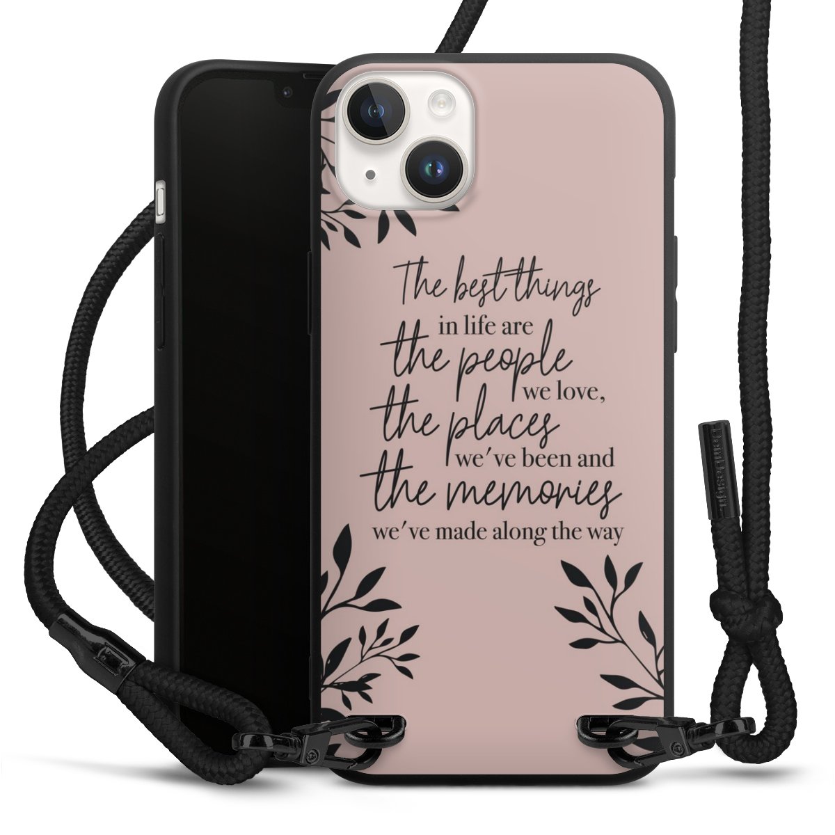 The matt black silicone case is made of flexible TPU (thermoplastic polyurethane) and offers robust protection. The durable, unbreakable material makes the cover flexible and dimensionally stable at the same time. The matte surface makes your design stand out more and is less susceptible to fingerprints and dirt. The stylish trend accessory fits comfortably in the hand and is perfectly complemented by the fabric (polyester) mobile phone strap. The braided fabric strap is approx. 1.70 metres long with a diameter of approx. 0.5 cm. Due to the special knotting technique, the length of the strap can be adjusted by simply pulling it, so that you can adapt it individually to your wishes. The practical case to wear around your neck is available with the fabric strap in black. As a little icing on the cake, we have provided the strap with a chic metal fastener in matt black. The strap is securely fastened to the case with loops made of high-quality genuine leather and press studs. The ends of the fabric strap are covered with metallic end caps and thus protected from fraying.