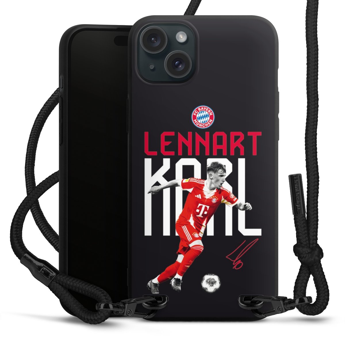 The matt black silicone case is made of flexible TPU (thermoplastic polyurethane) and offers robust protection. The durable, unbreakable material makes the cover flexible and dimensionally stable at the same time. The matte surface makes your design stand out more and is less susceptible to fingerprints and dirt. The stylish trend accessory fits comfortably in the hand and is perfectly complemented by the fabric (polyester) mobile phone strap. The braided fabric strap is approx. 1.70 metres long with a diameter of approx. 0.5 cm. Due to the special knotting technique, the length of the strap can be adjusted by simply pulling it, so that you can adapt it individually to your wishes. The practical case to wear around your neck is available with the fabric strap in black. As a little icing on the cake, we have provided the strap with a chic metal fastener in matt black. The strap is securely fastened to the case with loops made of high-quality genuine leather and press studs. The ends of the fabric strap are covered with metallic end caps and thus protected from fraying.