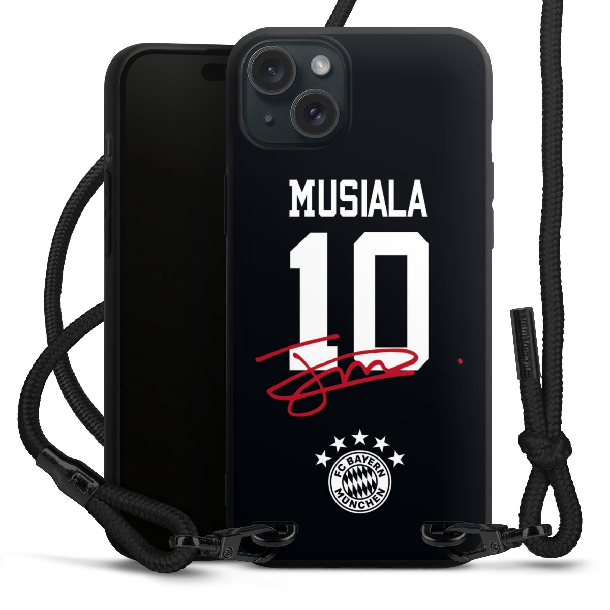 The matt black silicone case is made of flexible TPU (thermoplastic polyurethane) and offers robust protection. The durable, unbreakable material makes the cover flexible and dimensionally stable at the same time. The matte surface makes your design stand out more and is less susceptible to fingerprints and dirt. The stylish trend accessory fits comfortably in the hand and is perfectly complemented by the fabric (polyester) mobile phone strap. The braided fabric strap is approx. 1.70 metres long with a diameter of approx. 0.5 cm. Due to the special knotting technique, the length of the strap can be adjusted by simply pulling it, so that you can adapt it individually to your wishes. The practical case to wear around your neck is available with the fabric strap in black. As a little icing on the cake, we have provided the strap with a chic metal fastener in matt black. The strap is securely fastened to the case with loops made of high-quality genuine leather and press studs. The ends of the fabric strap are covered with metallic end caps and thus protected from fraying.