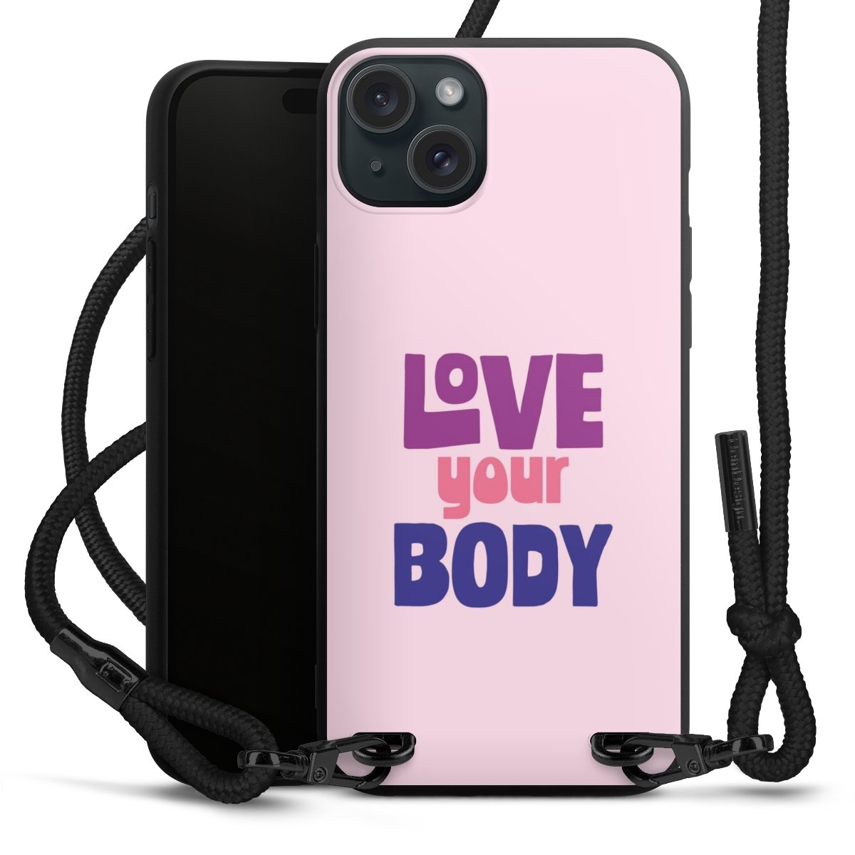 We use the solid direct print process for this phone case, which is why the print area only covers the back and the edge remains unprinted. The case to wear around your neck can be ordered unprinted, fully printed, or partially printed. For your design, either choose one of our exclusive shop motifs or get creative and create your own design, for example with photos and overlays. Design your own personal trend accessory and make an individual statement on the streets!