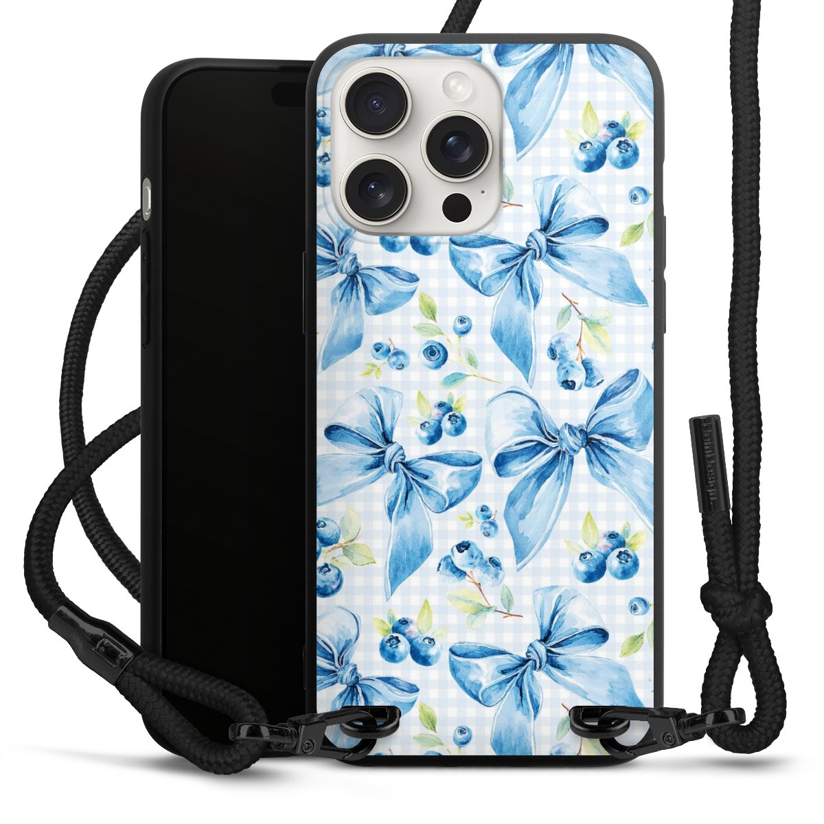 Pure Black: Phone case, fabric strap and metal details in stylish matt black.