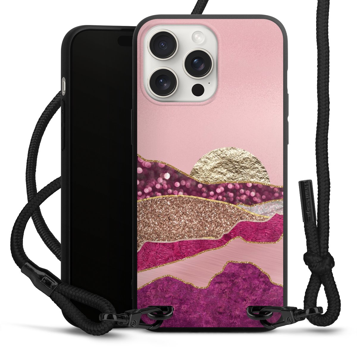 We use the solid direct print process for this phone case, which is why the print area only covers the back and the edge remains unprinted. The case to wear around your neck can be ordered unprinted, fully printed, or partially printed. For your design, either choose one of our exclusive shop motifs or get creative and create your own design, for example with photos and overlays. Design your own personal trend accessory and make an individual statement on the streets!