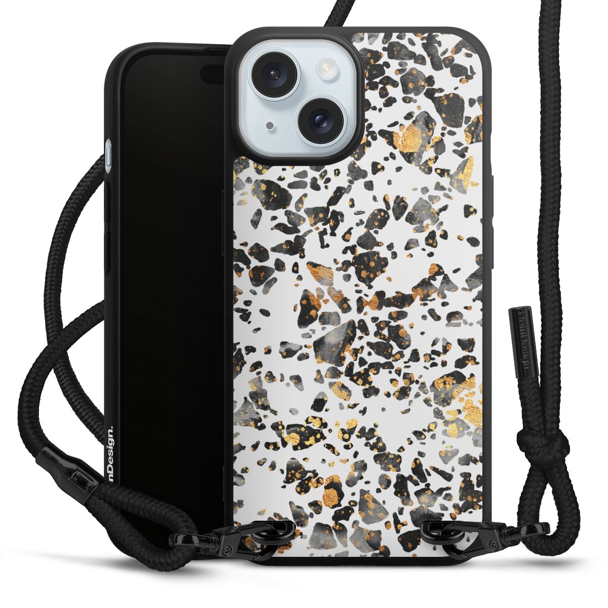Pure Black: Phone case, fabric strap and metal details in stylish matt black.