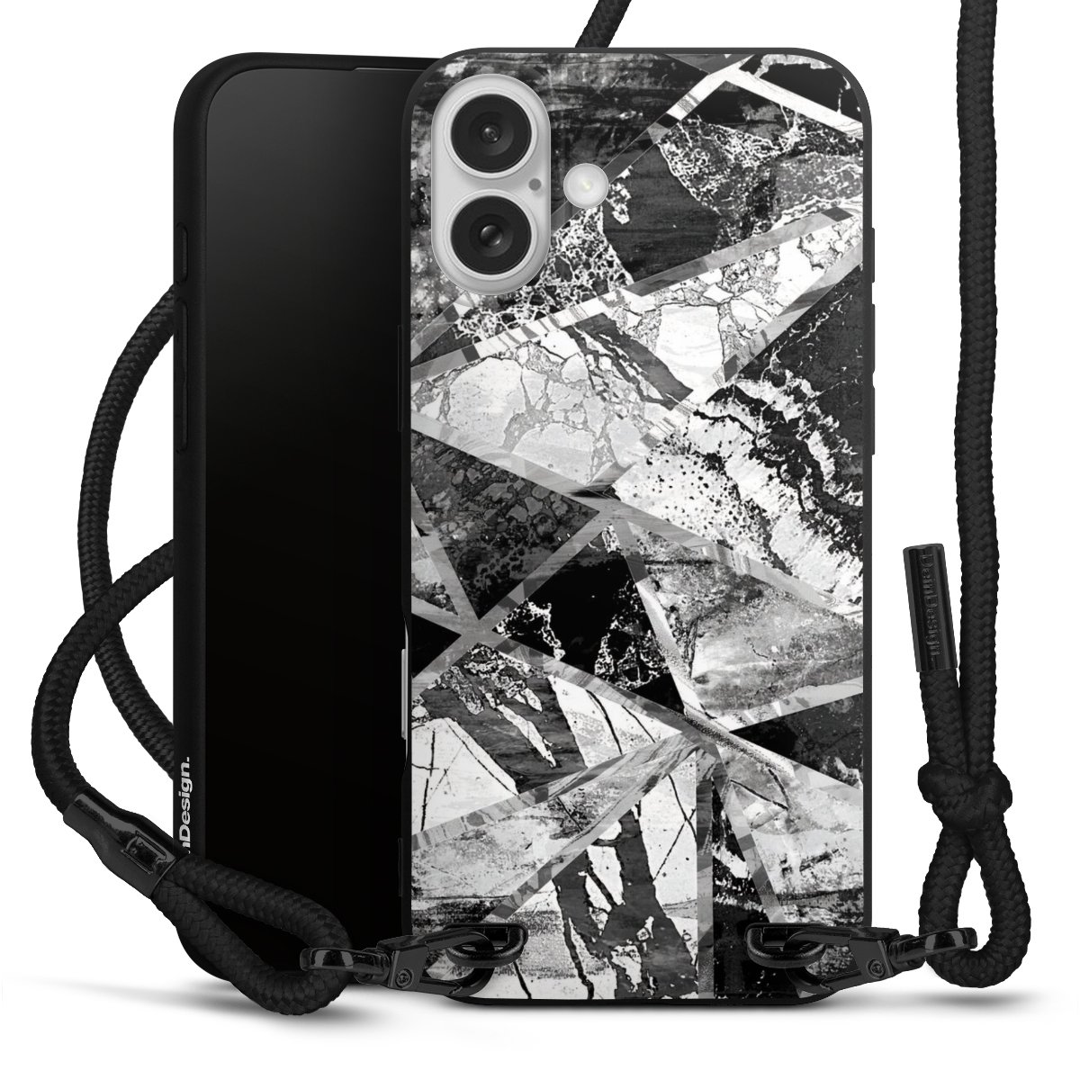 Pure Black: Phone case, fabric strap and metal details in stylish matt black.