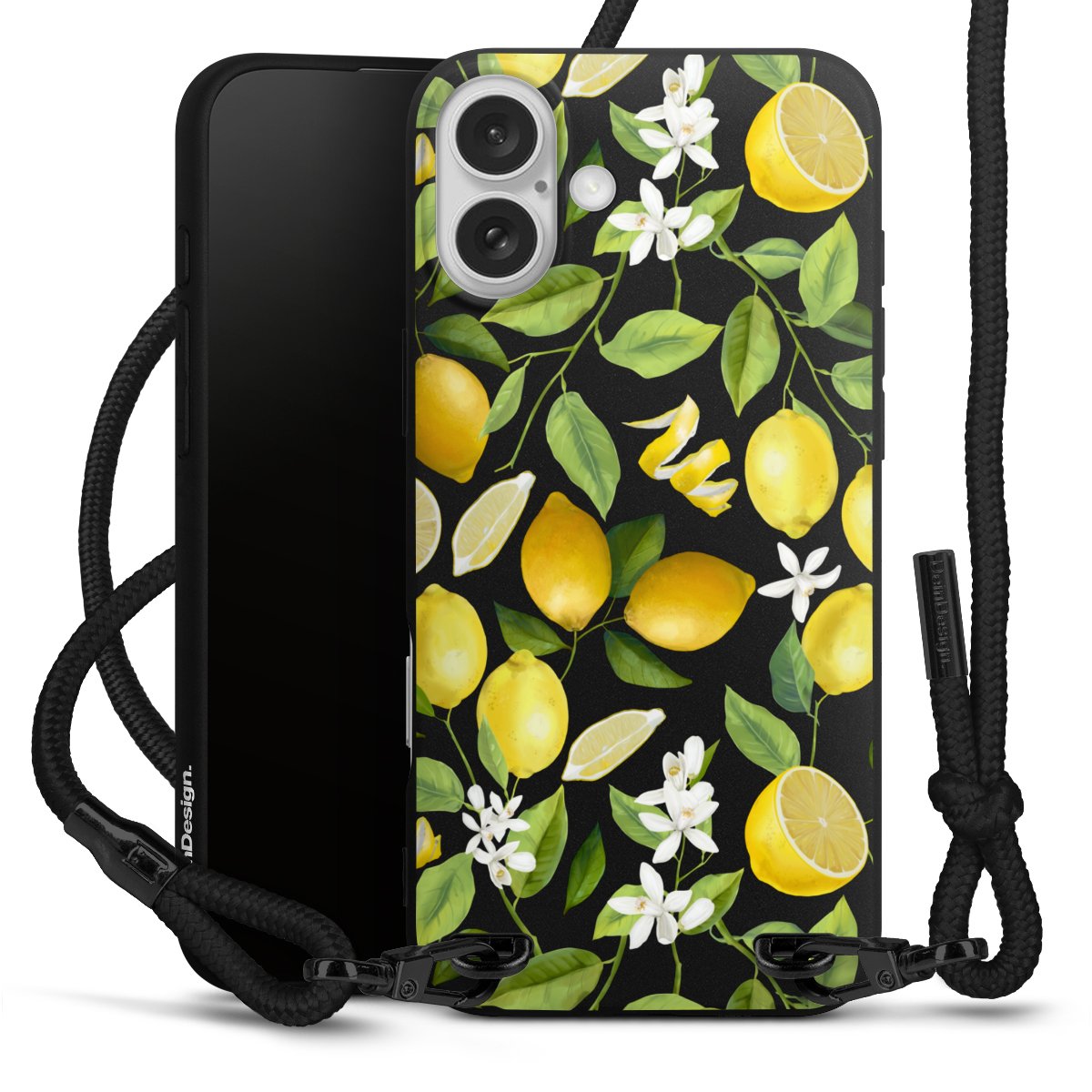 Pure Black: Phone case, fabric strap and metal details in stylish matt black.