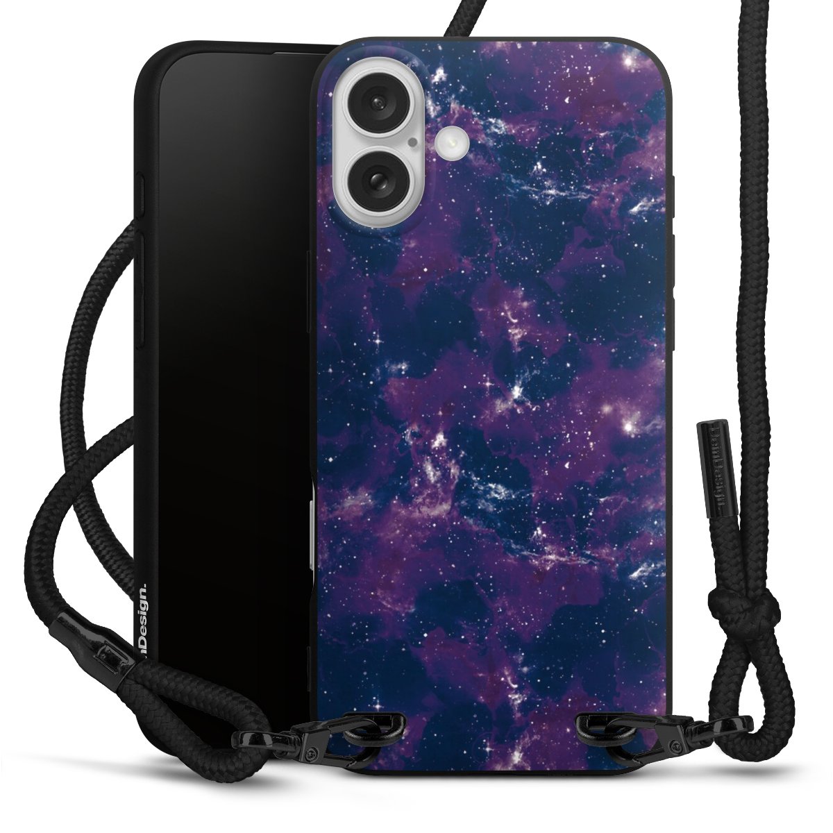 We use the solid direct print process for this phone case, which is why the print area only covers the back and the edge remains unprinted. The case to wear around your neck can be ordered unprinted, fully printed, or partially printed. For your design, either choose one of our exclusive shop motifs or get creative and create your own design, for example with photos and overlays. Design your own personal trend accessory and make an individual statement on the streets!