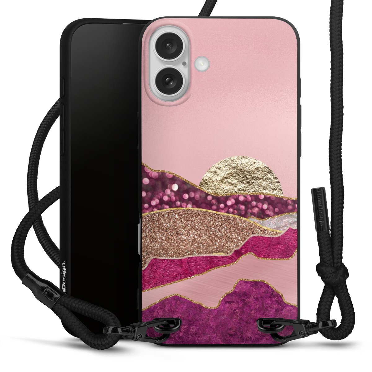 We use the solid direct print process for this phone case, which is why the print area only covers the back and the edge remains unprinted. The case to wear around your neck can be ordered unprinted, fully printed, or partially printed. For your design, either choose one of our exclusive shop motifs or get creative and create your own design, for example with photos and overlays. Design your own personal trend accessory and make an individual statement on the streets!