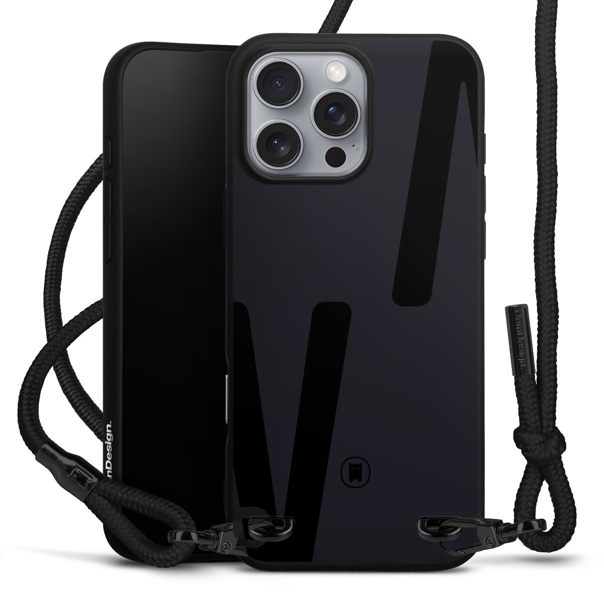 Pure Black: Phone case, fabric strap and metal details in stylish matt black.