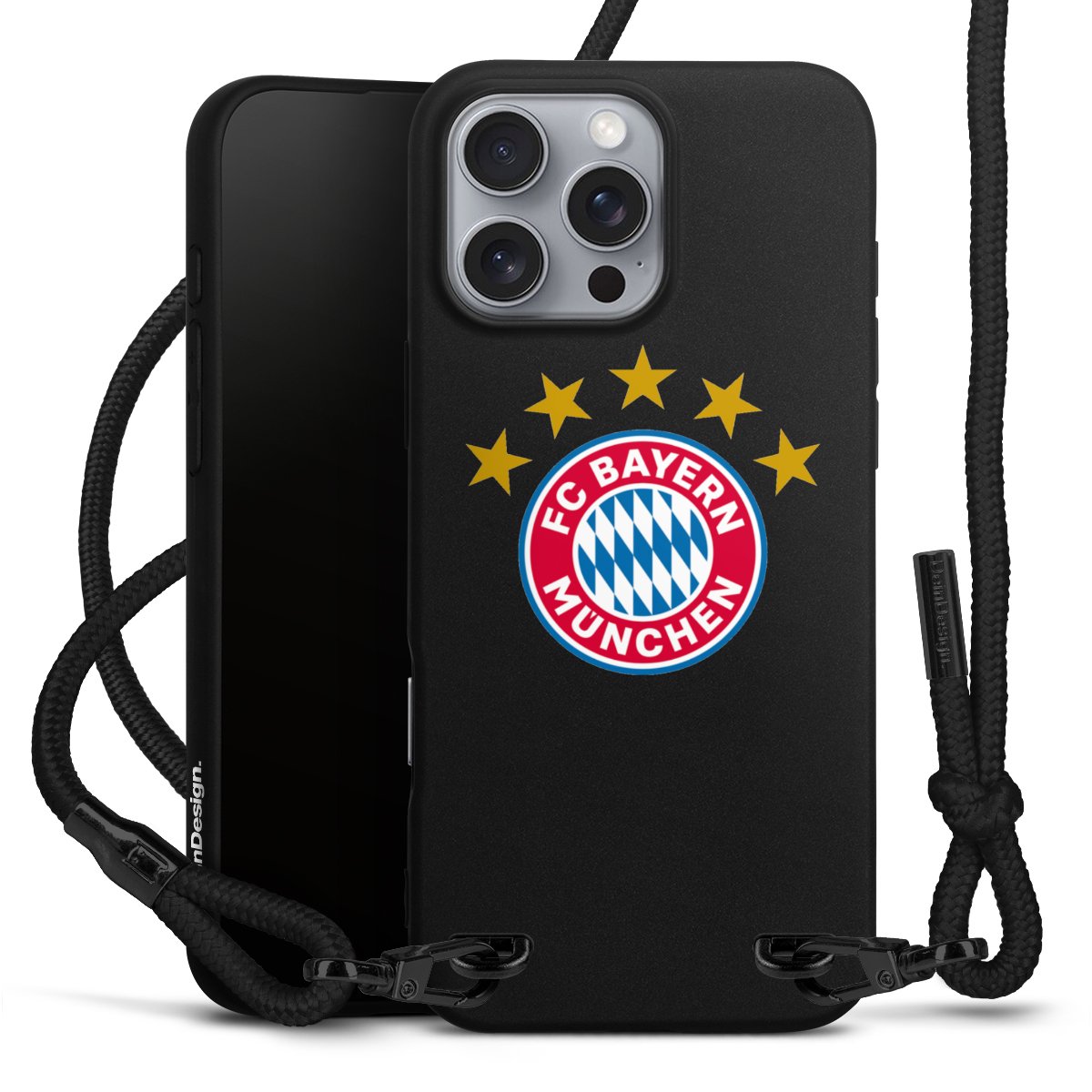 Pure Black: Phone case, fabric strap and metal details in stylish matt black.