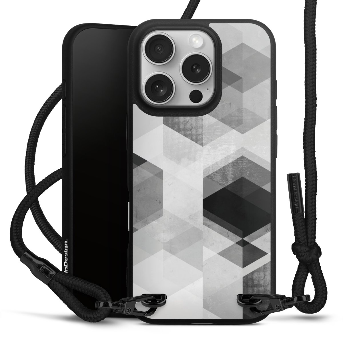 Pure Black: Phone case, fabric strap and metal details in stylish matt black.