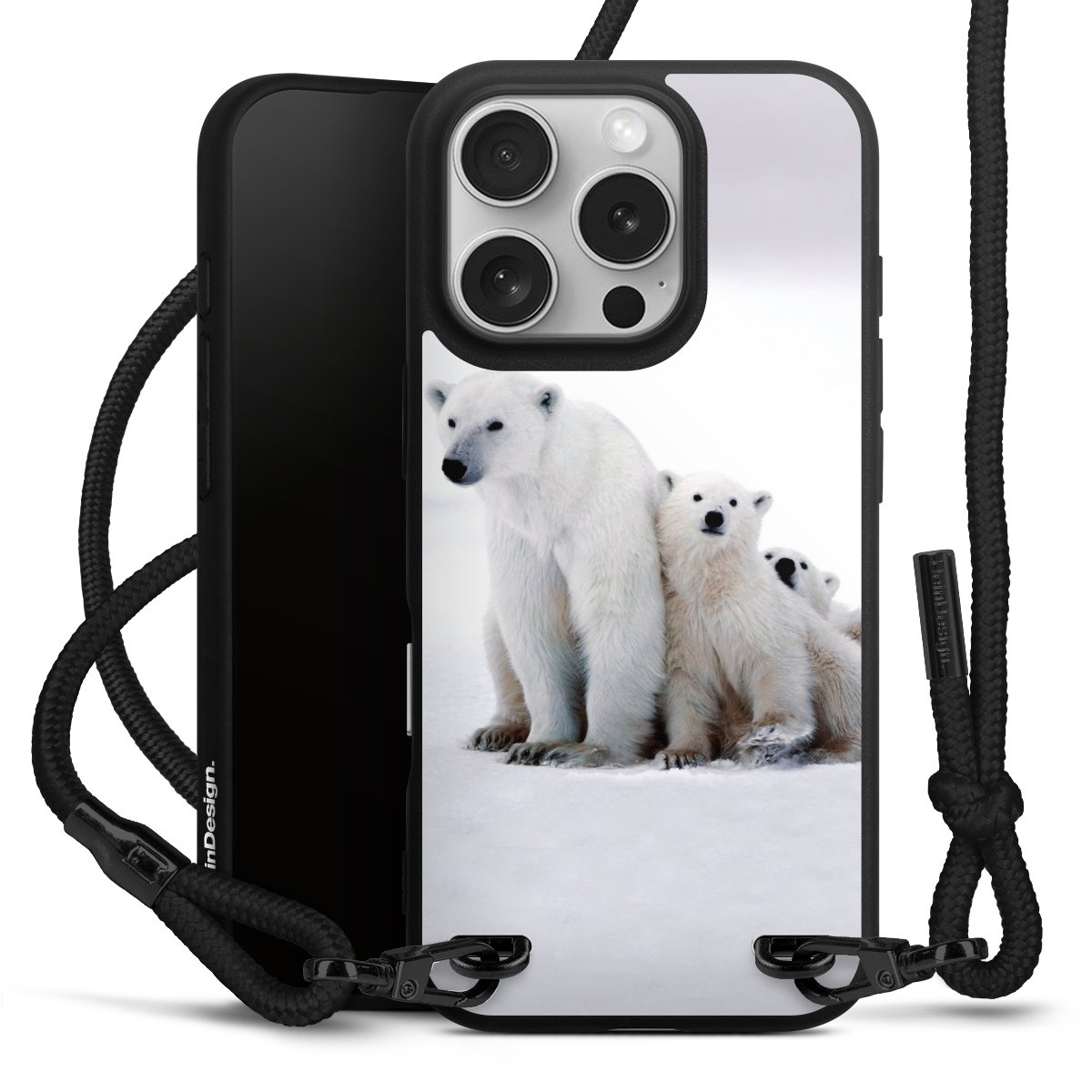 Pure Black: Phone case, fabric strap and metal details in stylish matt black.