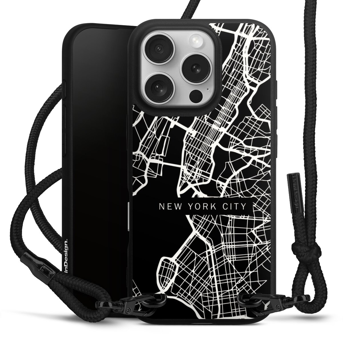 Pure Black: Phone case, fabric strap and metal details in stylish matt black.
