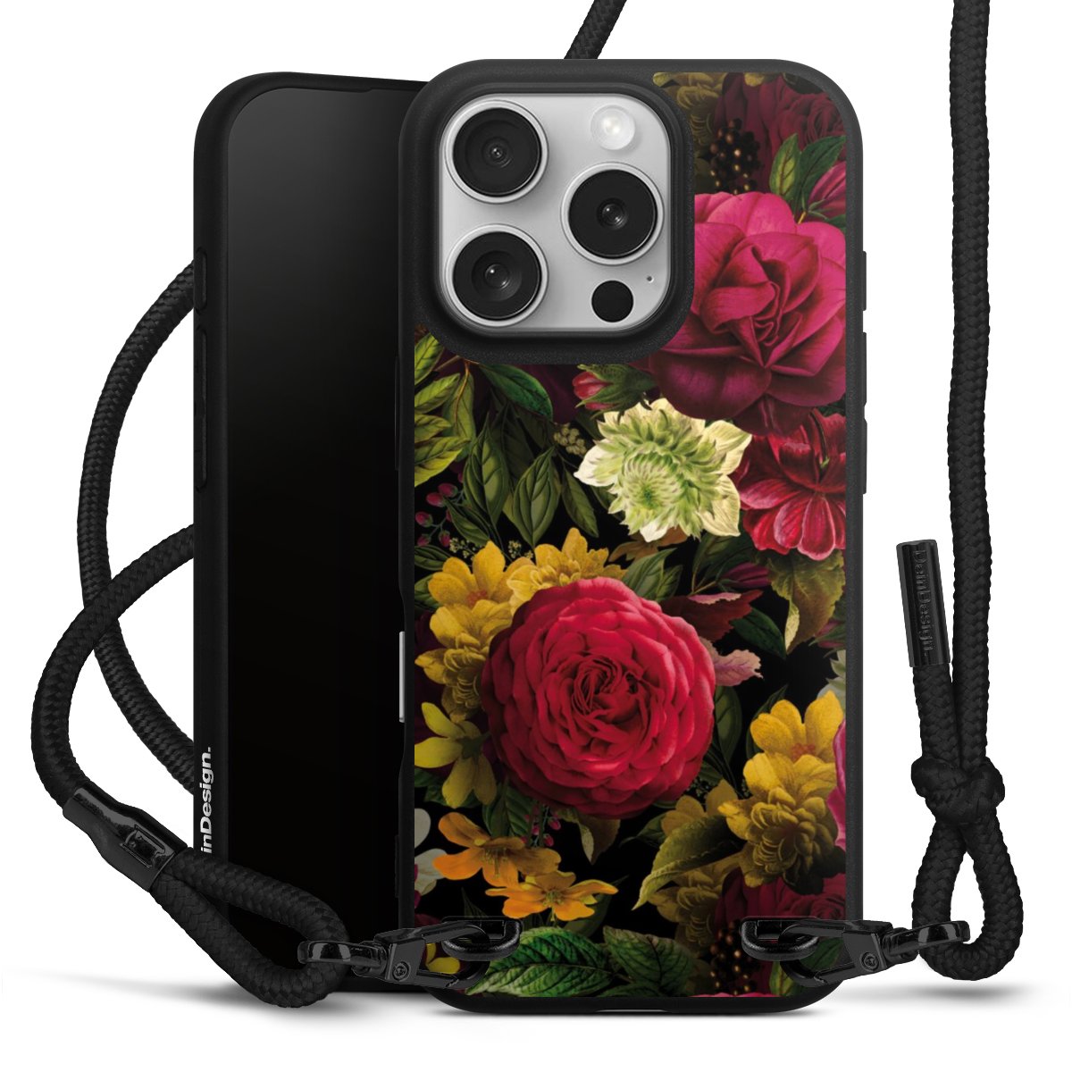 Pure Black: Phone case, fabric strap and metal details in stylish matt black.