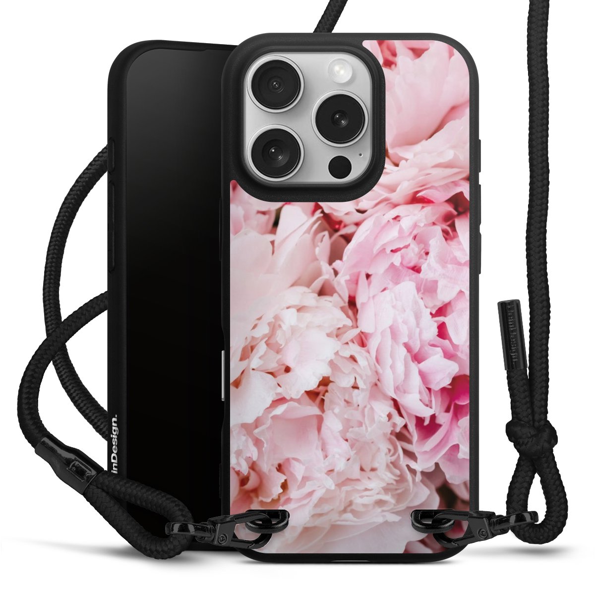 Pure Black: Phone case, fabric strap and metal details in stylish matt black.