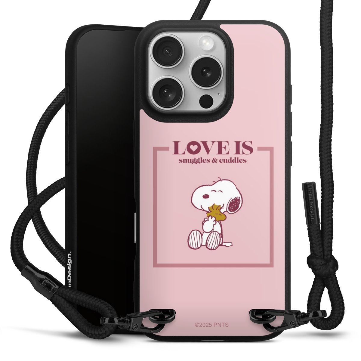Pure Black: Phone case, fabric strap and metal details in stylish matt black.