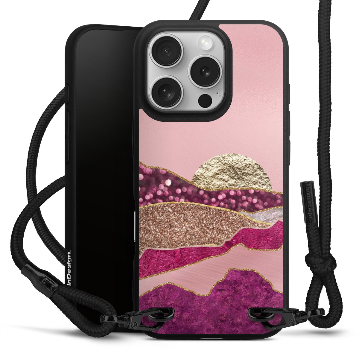 We use the solid direct print process for this phone case, which is why the print area only covers the back and the edge remains unprinted. The case to wear around your neck can be ordered unprinted, fully printed, or partially printed. For your design, either choose one of our exclusive shop motifs or get creative and create your own design, for example with photos and overlays. Design your own personal trend accessory and make an individual statement on the streets!