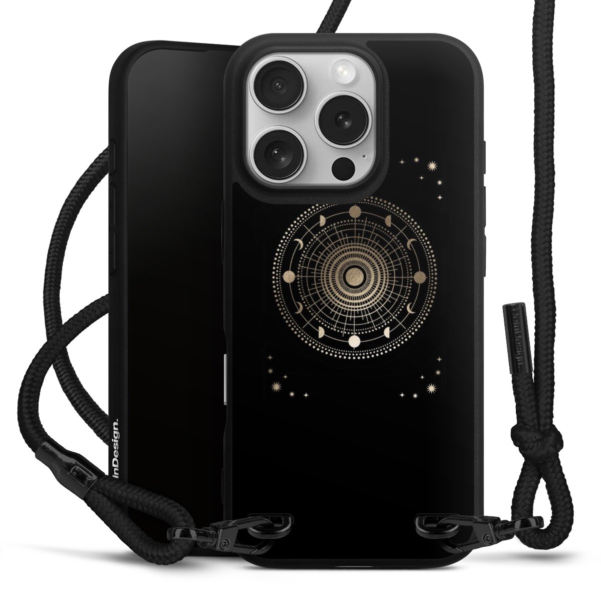 Pure Black: Phone case, fabric strap and metal details in stylish matt black.