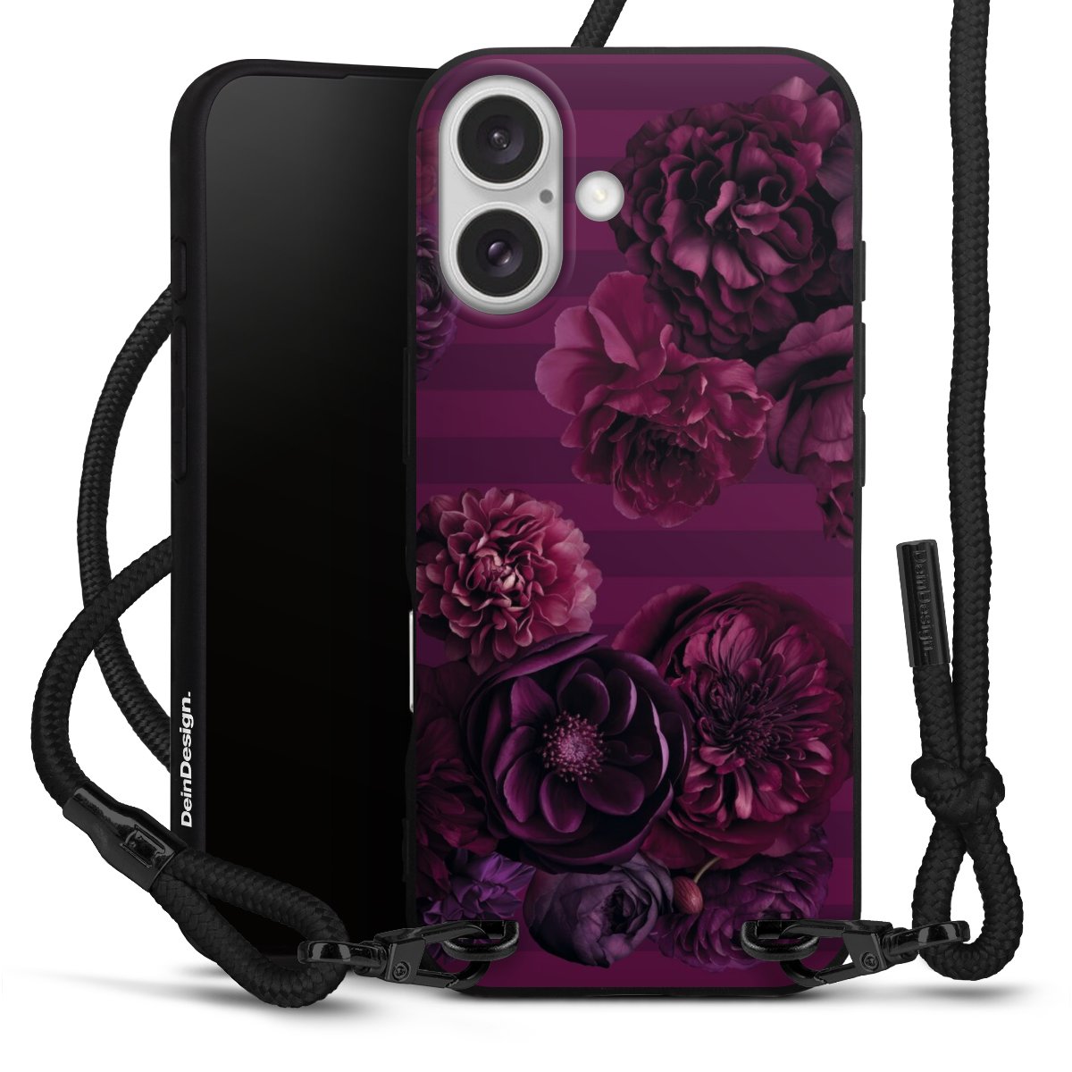 We use the solid direct print process for this phone case, which is why the print area only covers the back and the edge remains unprinted. The case to wear around your neck can be ordered unprinted, fully printed, or partially printed. For your design, either choose one of our exclusive shop motifs or get creative and create your own design, for example with photos and overlays. Design your own personal trend accessory and make an individual statement on the streets!