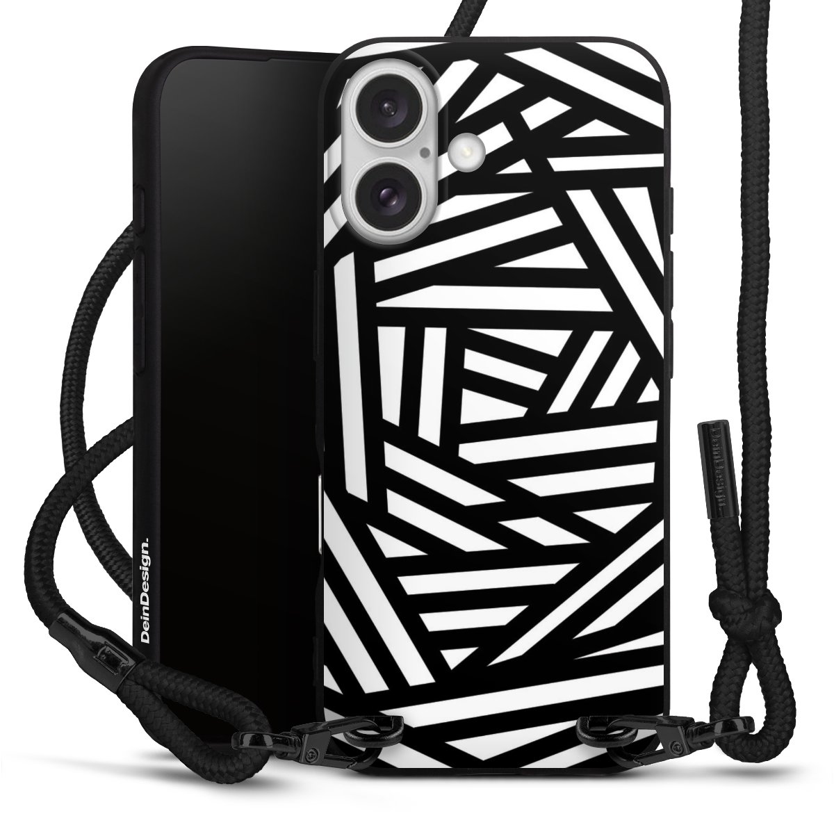 Pure Black: Phone case, fabric strap and metal details in stylish matt black.
