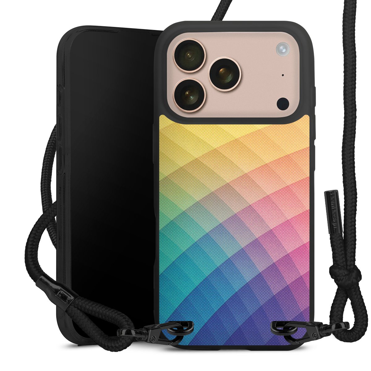 We use the solid direct print process for this phone case, which is why the print area only covers the back and the edge remains unprinted. The case to wear around your neck can be ordered unprinted, fully printed, or partially printed. For your design, either choose one of our exclusive shop motifs or get creative and create your own design, for example with photos and overlays. Design your own personal trend accessory and make an individual statement on the streets!