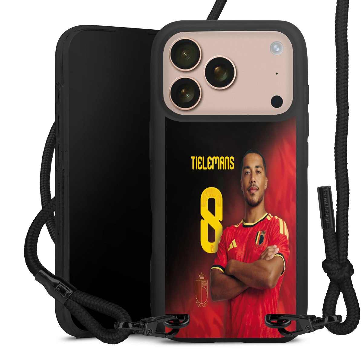 The matt black silicone case is made of flexible TPU (thermoplastic polyurethane) and offers robust protection. The durable, unbreakable material makes the cover flexible and dimensionally stable at the same time. The matte surface makes your design stand out more and is less susceptible to fingerprints and dirt. The stylish trend accessory fits comfortably in the hand and is perfectly complemented by the fabric (polyester) mobile phone strap. The braided fabric strap is approx. 1.70 metres long with a diameter of approx. 0.5 cm. Due to the special knotting technique, the length of the strap can be adjusted by simply pulling it, so that you can adapt it individually to your wishes. The practical case to wear around your neck is available with the fabric strap in black. As a little icing on the cake, we have provided the strap with a chic metal fastener in matt black. The strap is securely fastened to the case with loops made of high-quality genuine leather and press studs. The ends of the fabric strap are covered with metallic end caps and thus protected from fraying.