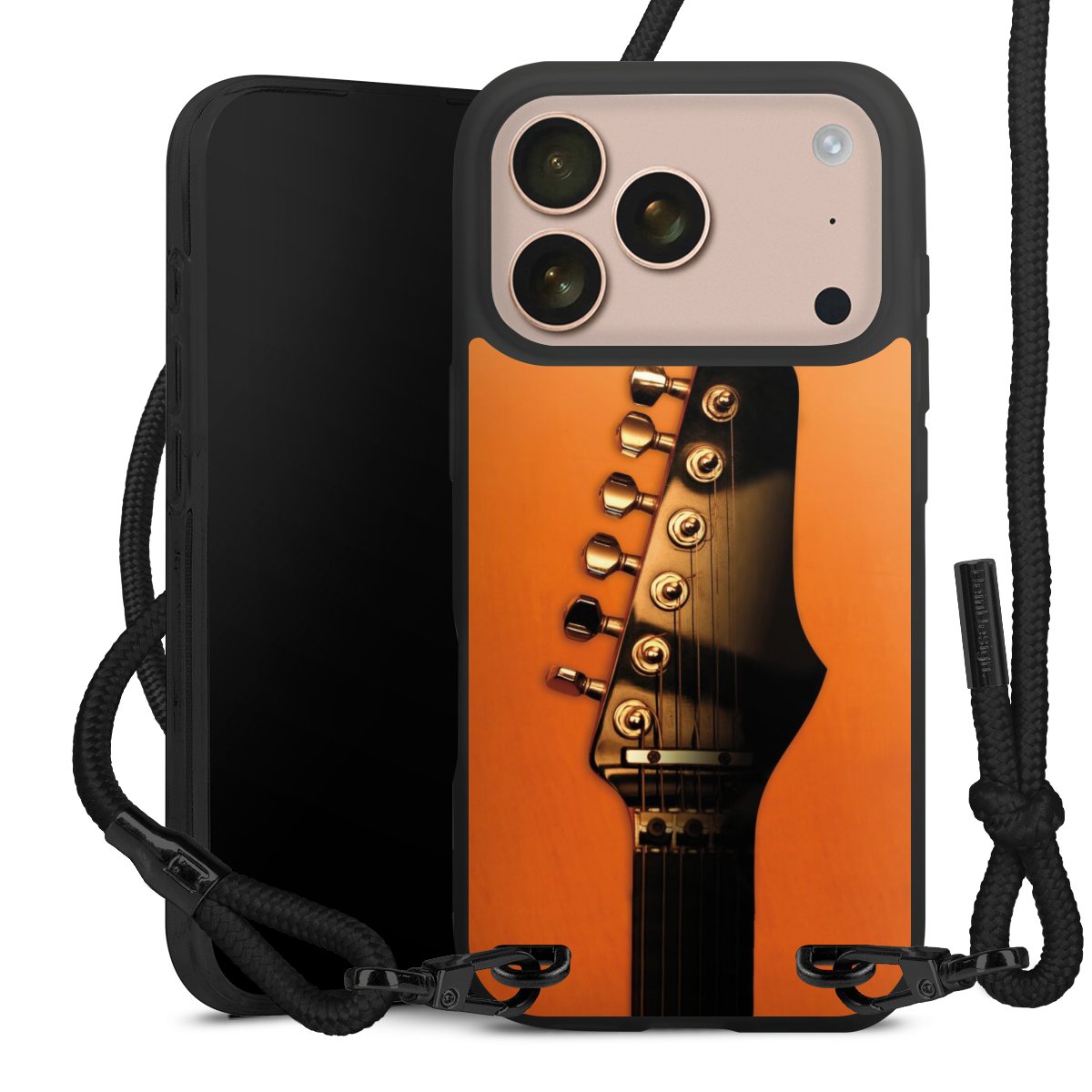 Pure Black: Phone case, fabric strap and metal details in stylish matt black.