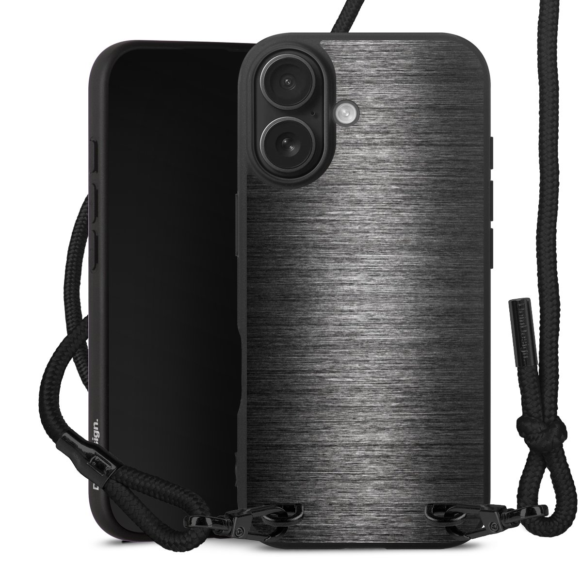 Pure Black: Phone case, fabric strap and metal details in stylish matt black.
