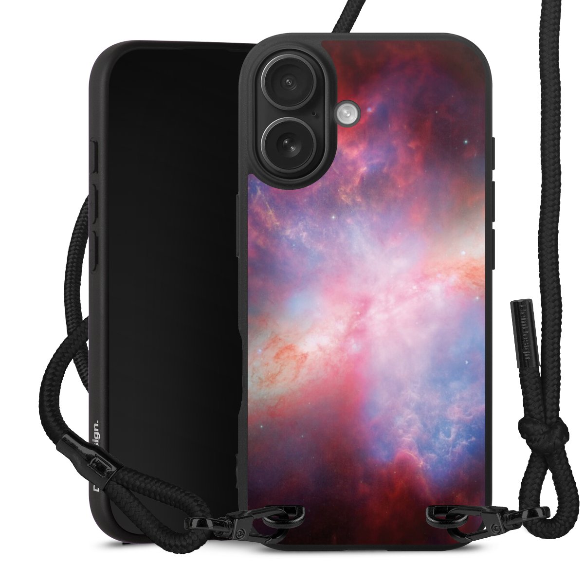 We use the solid direct print process for this phone case, which is why the print area only covers the back and the edge remains unprinted. The case to wear around your neck can be ordered unprinted, fully printed, or partially printed. For your design, either choose one of our exclusive shop motifs or get creative and create your own design, for example with photos and overlays. Design your own personal trend accessory and make an individual statement on the streets!