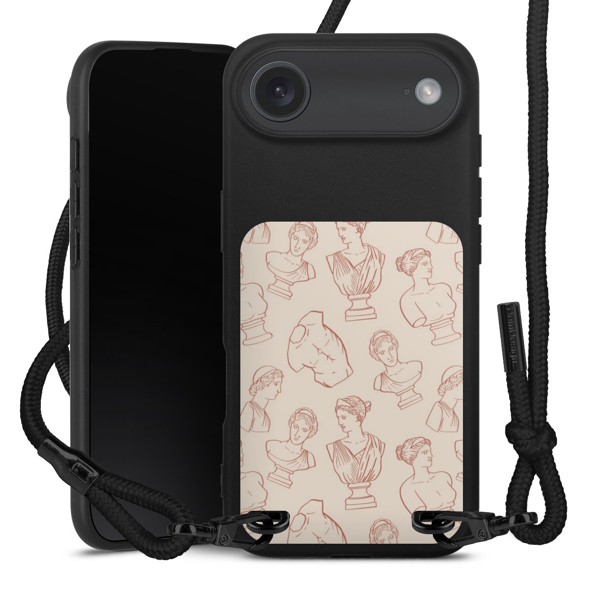 We use the solid direct print process for this phone case, which is why the print area only covers the back and the edge remains unprinted. The case to wear around your neck can be ordered unprinted, fully printed, or partially printed. For your design, either choose one of our exclusive shop motifs or get creative and create your own design, for example with photos and overlays. Design your own personal trend accessory and make an individual statement on the streets!