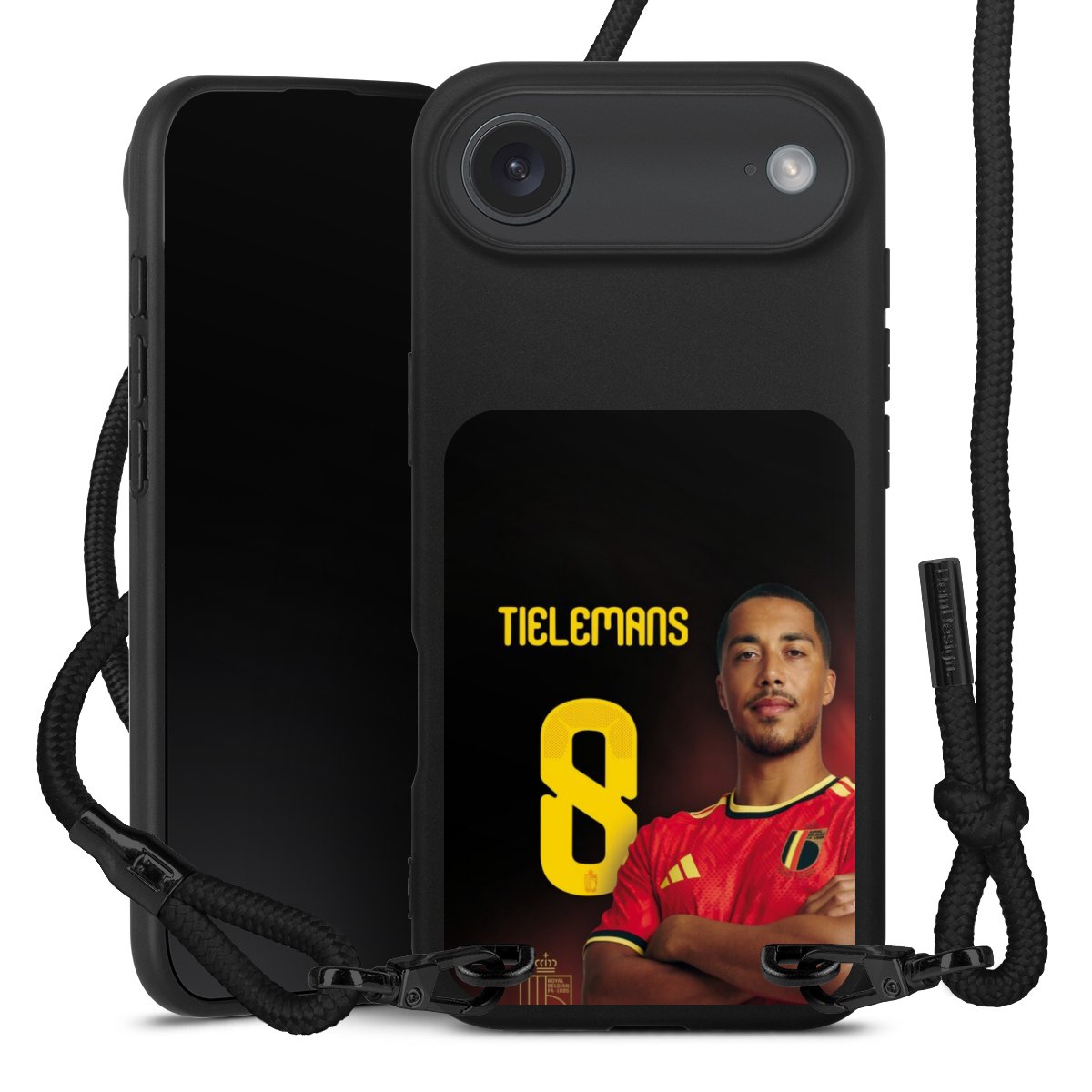 The matt black silicone case is made of flexible TPU (thermoplastic polyurethane) and offers robust protection. The durable, unbreakable material makes the cover flexible and dimensionally stable at the same time. The matte surface makes your design stand out more and is less susceptible to fingerprints and dirt. The stylish trend accessory fits comfortably in the hand and is perfectly complemented by the fabric (polyester) mobile phone strap. The braided fabric strap is approx. 1.70 metres long with a diameter of approx. 0.5 cm. Due to the special knotting technique, the length of the strap can be adjusted by simply pulling it, so that you can adapt it individually to your wishes. The practical case to wear around your neck is available with the fabric strap in black. As a little icing on the cake, we have provided the strap with a chic metal fastener in matt black. The strap is securely fastened to the case with loops made of high-quality genuine leather and press studs. The ends of the fabric strap are covered with metallic end caps and thus protected from fraying.