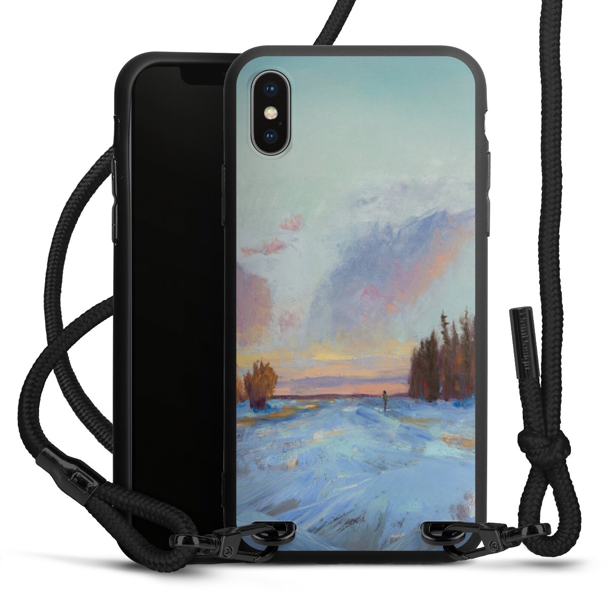 We use the solid direct print process for this phone case, which is why the print area only covers the back and the edge remains unprinted. The case to wear around your neck can be ordered unprinted, fully printed, or partially printed. For your design, either choose one of our exclusive shop motifs or get creative and create your own design, for example with photos and overlays. Design your own personal trend accessory and make an individual statement on the streets!