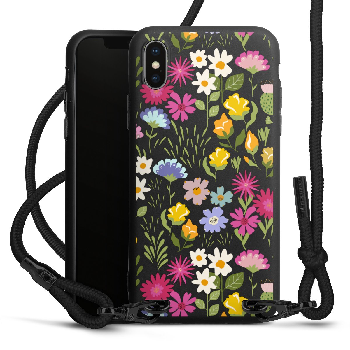 The matt black silicone case is made of flexible TPU (thermoplastic polyurethane) and offers robust protection. The durable, unbreakable material makes the cover flexible and dimensionally stable at the same time. The matte surface makes your design stand out more and is less susceptible to fingerprints and dirt. The stylish trend accessory fits comfortably in the hand and is perfectly complemented by the fabric (polyester) mobile phone strap. The braided fabric strap is approx. 1.70 metres long with a diameter of approx. 0.5 cm. Due to the special knotting technique, the length of the strap can be adjusted by simply pulling it, so that you can adapt it individually to your wishes. The practical case to wear around your neck is available with the fabric strap in black. As a little icing on the cake, we have provided the strap with a chic metal fastener in matt black. The strap is securely fastened to the case with loops made of high-quality genuine leather and press studs. The ends of the fabric strap are covered with metallic end caps and thus protected from fraying.