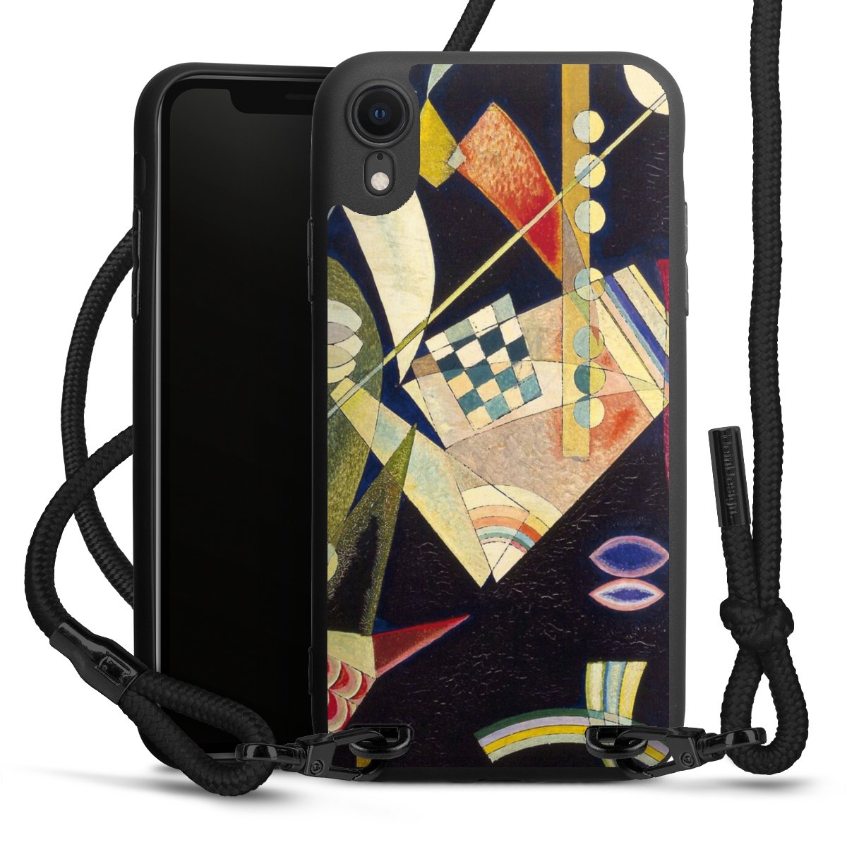 The matt black silicone case is made of flexible TPU (thermoplastic polyurethane) and offers robust protection. The durable, unbreakable material makes the cover flexible and dimensionally stable at the same time. The matte surface makes your design stand out more and is less susceptible to fingerprints and dirt. The stylish trend accessory fits comfortably in the hand and is perfectly complemented by the fabric (polyester) mobile phone strap. The braided fabric strap is approx. 1.70 metres long with a diameter of approx. 0.5 cm. Due to the special knotting technique, the length of the strap can be adjusted by simply pulling it, so that you can adapt it individually to your wishes. The practical case to wear around your neck is available with the fabric strap in black. As a little icing on the cake, we have provided the strap with a chic metal fastener in matt black. The strap is securely fastened to the case with loops made of high-quality genuine leather and press studs. The ends of the fabric strap are covered with metallic end caps and thus protected from fraying.