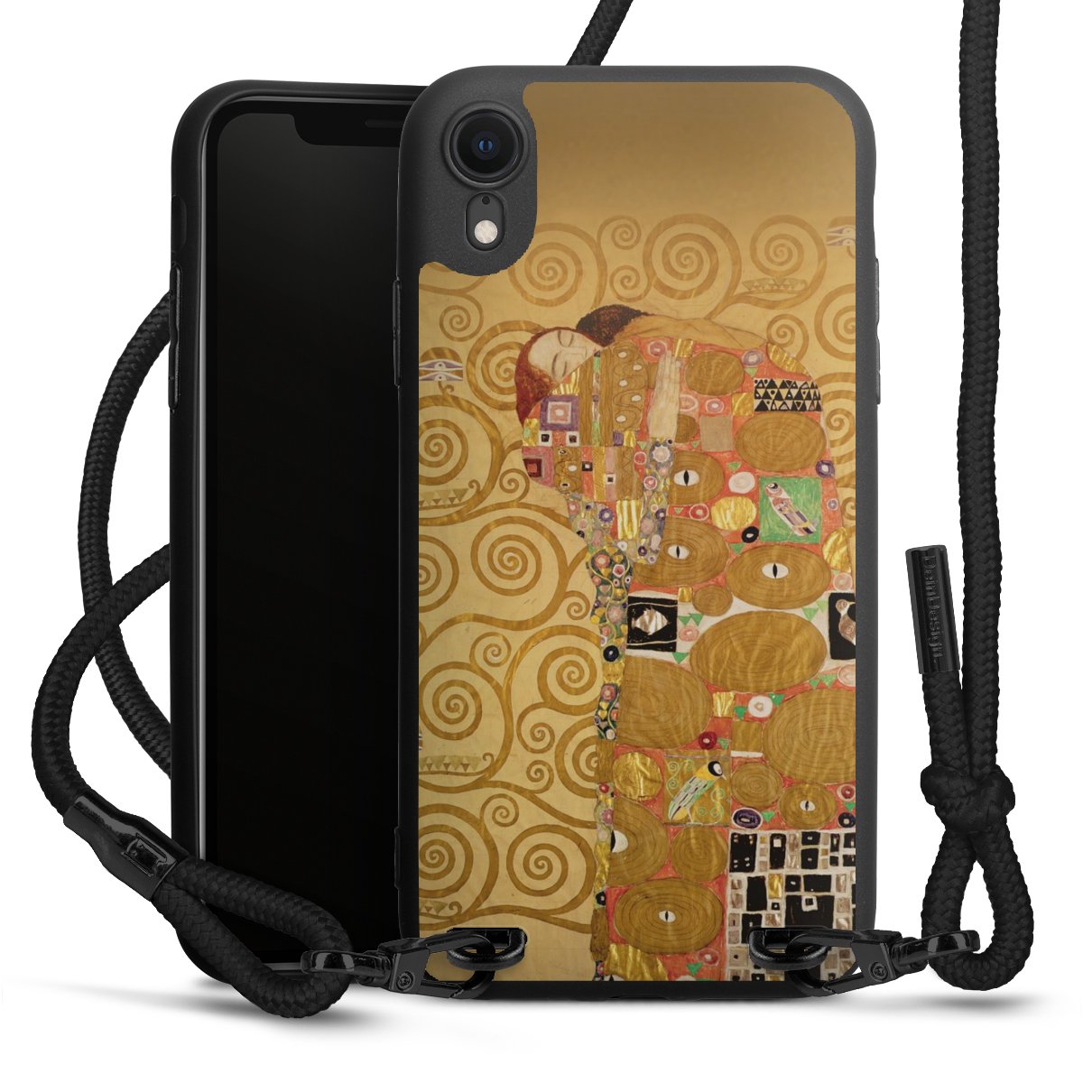 The matt black silicone case is made of flexible TPU (thermoplastic polyurethane) and offers robust protection. The durable, unbreakable material makes the cover flexible and dimensionally stable at the same time. The matte surface makes your design stand out more and is less susceptible to fingerprints and dirt. The stylish trend accessory fits comfortably in the hand and is perfectly complemented by the fabric (polyester) mobile phone strap. The braided fabric strap is approx. 1.70 metres long with a diameter of approx. 0.5 cm. Due to the special knotting technique, the length of the strap can be adjusted by simply pulling it, so that you can adapt it individually to your wishes. The practical case to wear around your neck is available with the fabric strap in black. As a little icing on the cake, we have provided the strap with a chic metal fastener in matt black. The strap is securely fastened to the case with loops made of high-quality genuine leather and press studs. The ends of the fabric strap are covered with metallic end caps and thus protected from fraying.