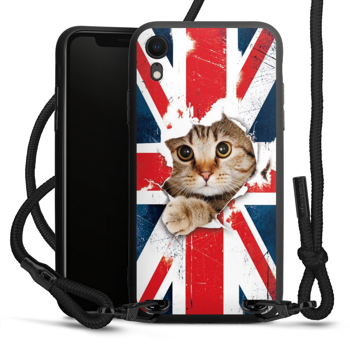 The matt black silicone case is made of flexible TPU (thermoplastic polyurethane) and offers robust protection. The durable, unbreakable material makes the cover flexible and dimensionally stable at the same time. The matte surface makes your design stand out more and is less susceptible to fingerprints and dirt. The stylish trend accessory fits comfortably in the hand and is perfectly complemented by the fabric (polyester) mobile phone strap. The braided fabric strap is approx. 1.70 metres long with a diameter of approx. 0.5 cm. Due to the special knotting technique, the length of the strap can be adjusted by simply pulling it, so that you can adapt it individually to your wishes. The practical case to wear around your neck is available with the fabric strap in black. As a little icing on the cake, we have provided the strap with a chic metal fastener in matt black. The strap is securely fastened to the case with loops made of high-quality genuine leather and press studs. The ends of the fabric strap are covered with metallic end caps and thus protected from fraying.