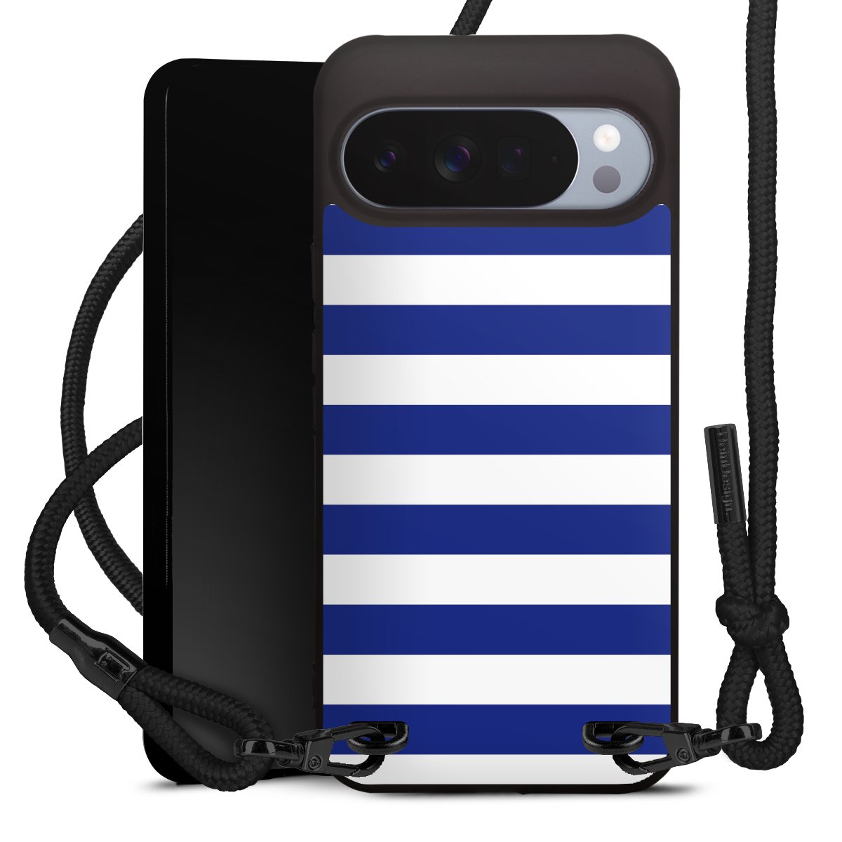 Pure Black: Phone case, fabric strap and metal details in stylish matt black.