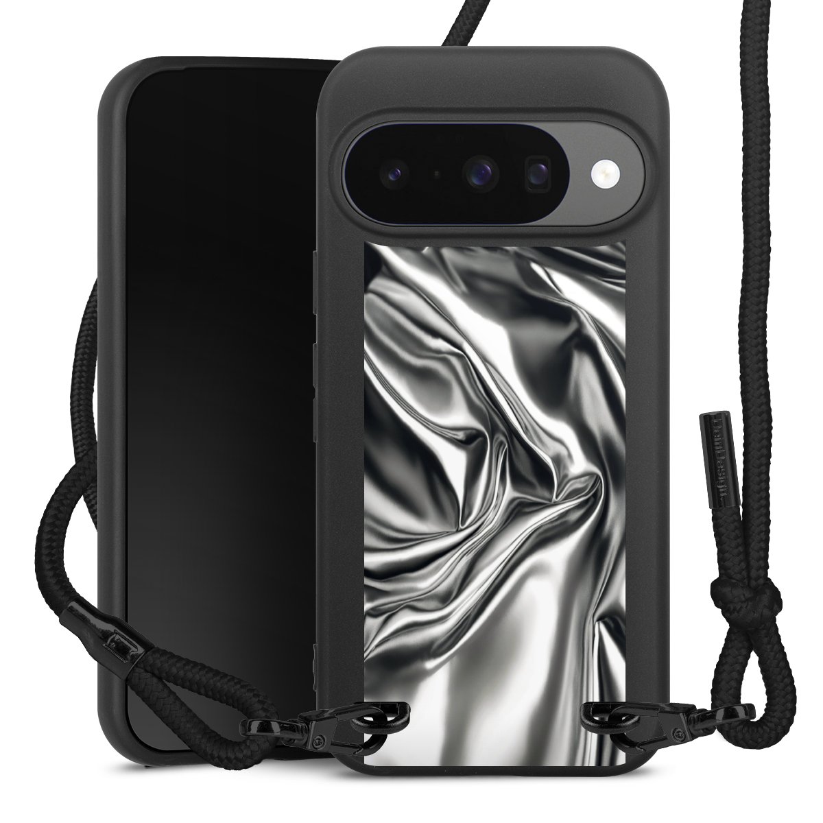 Pure Black: Phone case, fabric strap and metal details in stylish matt black.