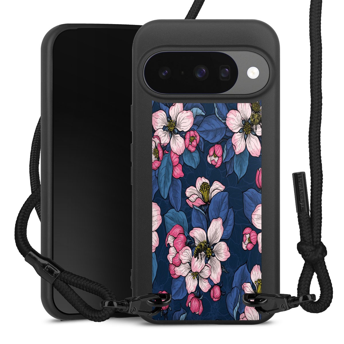 Pure Black: Phone case, fabric strap and metal details in stylish matt black.