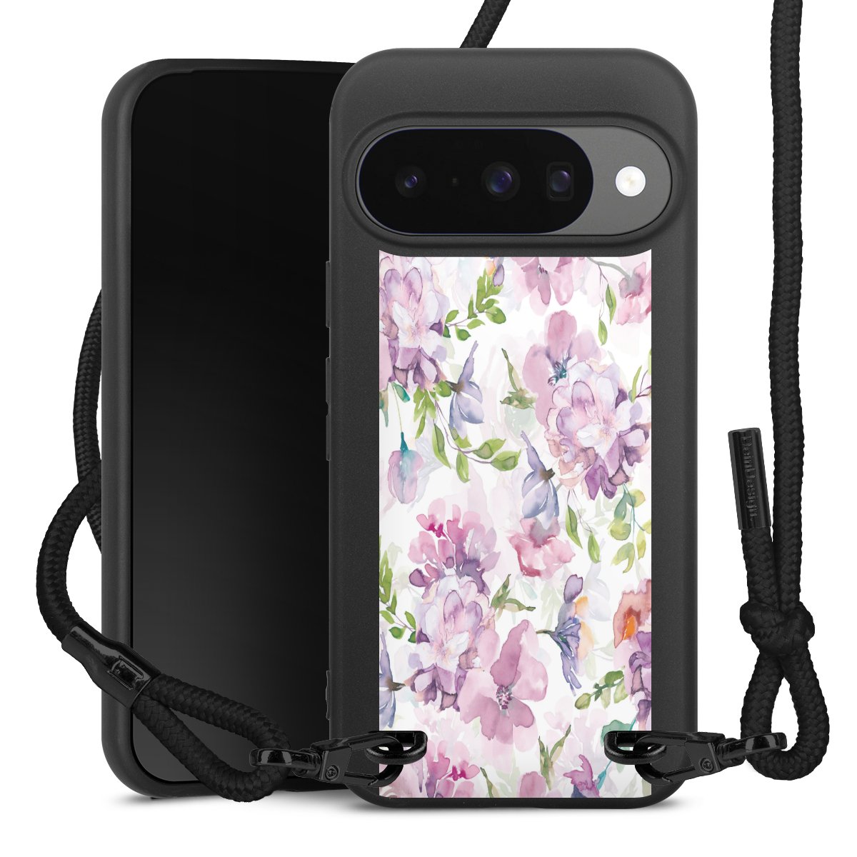 The matt black silicone case is made of flexible TPU (thermoplastic polyurethane) and offers robust protection. The durable, unbreakable material makes the cover flexible and dimensionally stable at the same time. The matte surface makes your design stand out more and is less susceptible to fingerprints and dirt. The stylish trend accessory fits comfortably in the hand and is perfectly complemented by the fabric (polyester) mobile phone strap. The braided fabric strap is approx. 1.70 metres long with a diameter of approx. 0.5 cm. Due to the special knotting technique, the length of the strap can be adjusted by simply pulling it, so that you can adapt it individually to your wishes. The practical case to wear around your neck is available with the fabric strap in black. As a little icing on the cake, we have provided the strap with a chic metal fastener in matt black. The strap is securely fastened to the case with loops made of high-quality genuine leather and press studs. The ends of the fabric strap are covered with metallic end caps and thus protected from fraying.