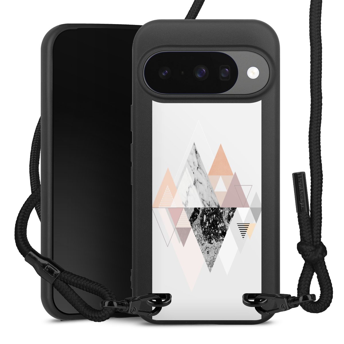 Pure Black: Phone case, fabric strap and metal details in stylish matt black.