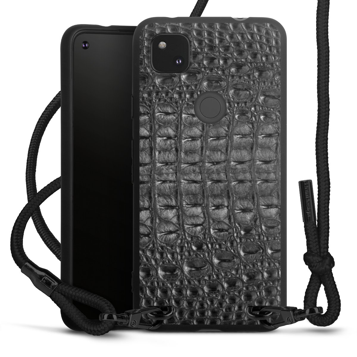 Pure Black: Phone case, fabric strap and metal details in stylish matt black.