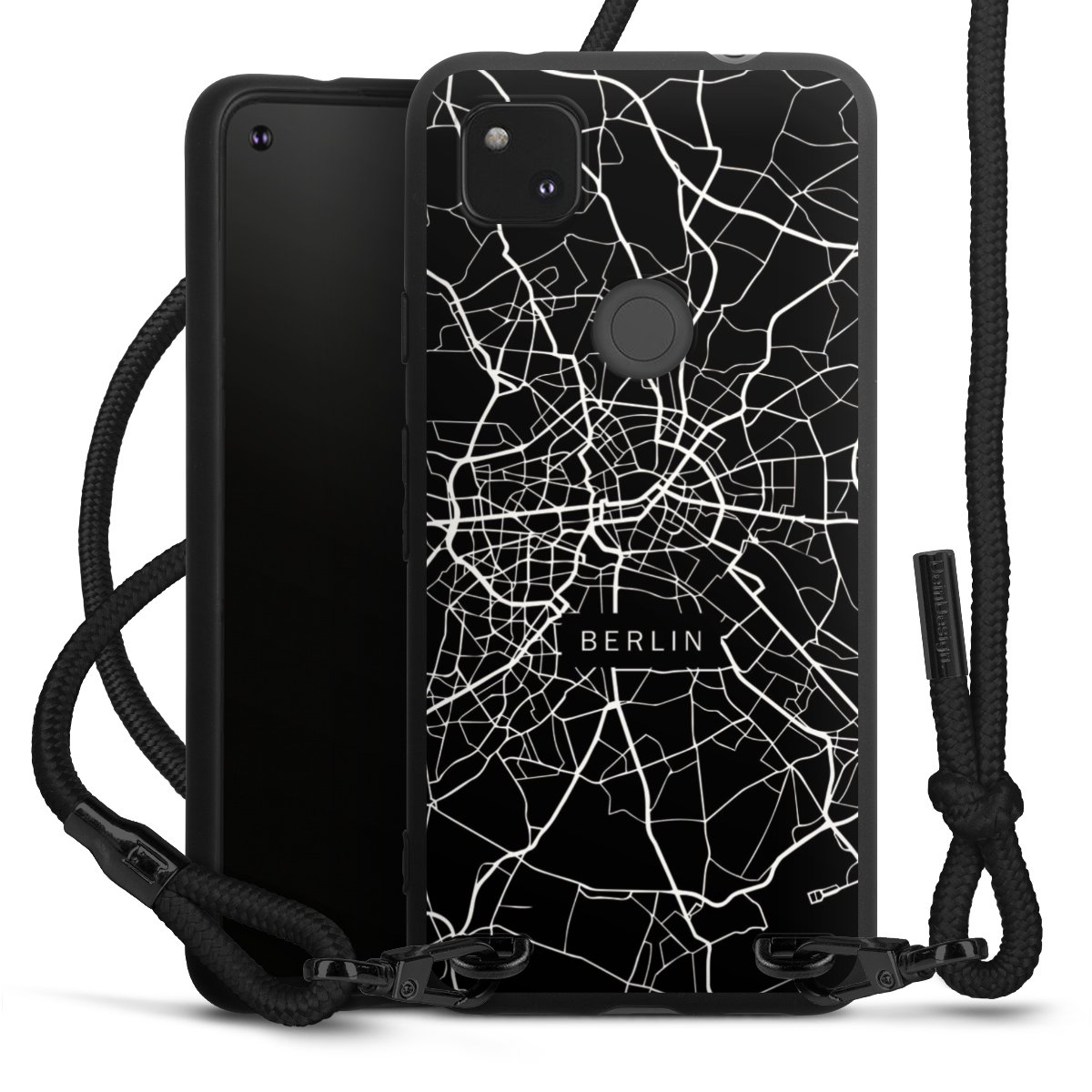 The matt black silicone case is made of flexible TPU (thermoplastic polyurethane) and offers robust protection. The durable, unbreakable material makes the cover flexible and dimensionally stable at the same time. The matte surface makes your design stand out more and is less susceptible to fingerprints and dirt. The stylish trend accessory fits comfortably in the hand and is perfectly complemented by the fabric (polyester) mobile phone strap. The braided fabric strap is approx. 1.70 metres long with a diameter of approx. 0.5 cm. Due to the special knotting technique, the length of the strap can be adjusted by simply pulling it, so that you can adapt it individually to your wishes. The practical case to wear around your neck is available with the fabric strap in black. As a little icing on the cake, we have provided the strap with a chic metal fastener in matt black. The strap is securely fastened to the case with loops made of high-quality genuine leather and press studs. The ends of the fabric strap are covered with metallic end caps and thus protected from fraying.