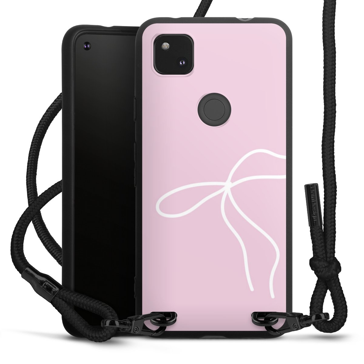 The matt black silicone case is made of flexible TPU (thermoplastic polyurethane) and offers robust protection. The durable, unbreakable material makes the cover flexible and dimensionally stable at the same time. The matte surface makes your design stand out more and is less susceptible to fingerprints and dirt. The stylish trend accessory fits comfortably in the hand and is perfectly complemented by the fabric (polyester) mobile phone strap. The braided fabric strap is approx. 1.70 metres long with a diameter of approx. 0.5 cm. Due to the special knotting technique, the length of the strap can be adjusted by simply pulling it, so that you can adapt it individually to your wishes. The practical case to wear around your neck is available with the fabric strap in black. As a little icing on the cake, we have provided the strap with a chic metal fastener in matt black. The strap is securely fastened to the case with loops made of high-quality genuine leather and press studs. The ends of the fabric strap are covered with metallic end caps and thus protected from fraying.