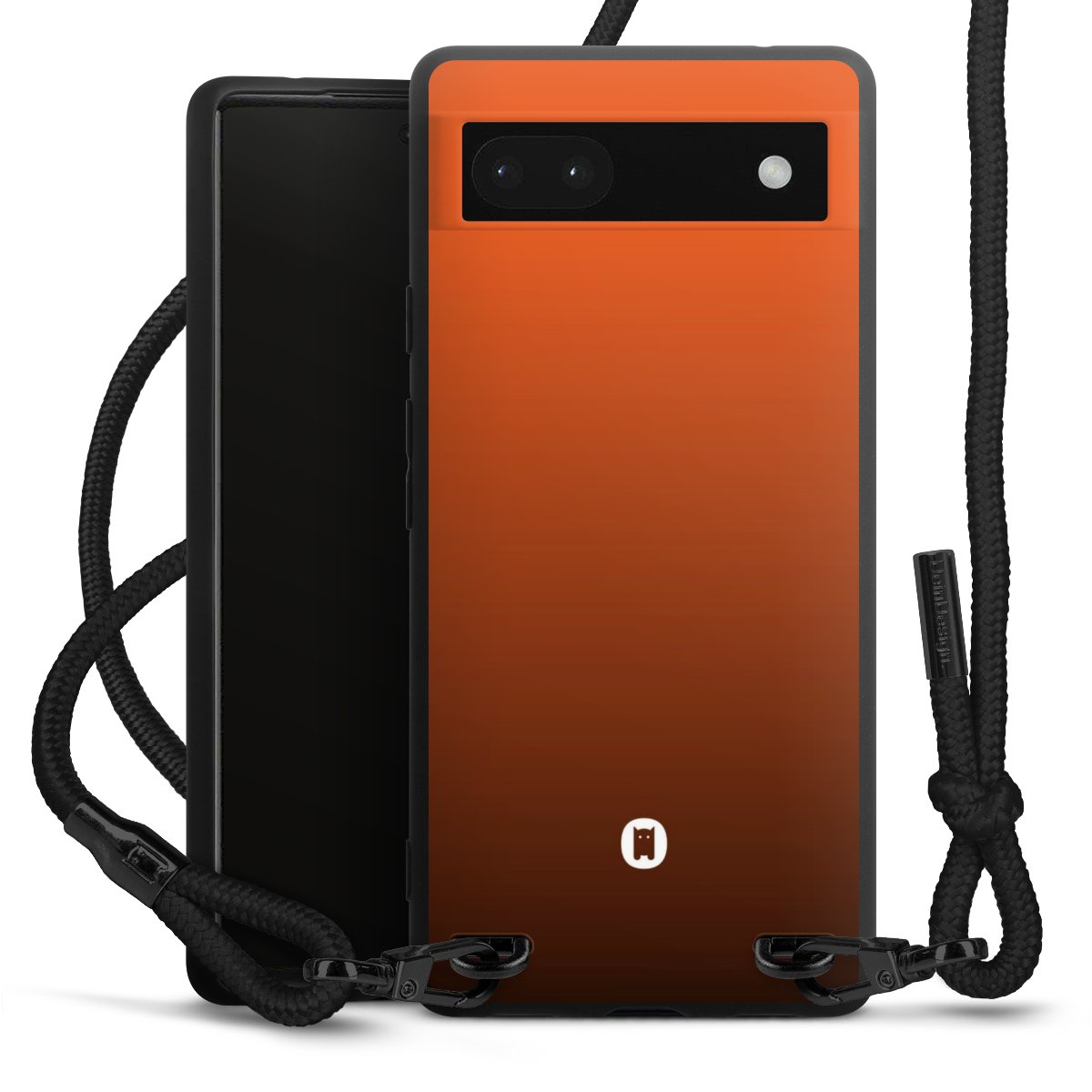 The matt black silicone case is made of flexible TPU (thermoplastic polyurethane) and offers robust protection. The durable, unbreakable material makes the cover flexible and dimensionally stable at the same time. The matte surface makes your design stand out more and is less susceptible to fingerprints and dirt. The stylish trend accessory fits comfortably in the hand and is perfectly complemented by the fabric (polyester) mobile phone strap. The braided fabric strap is approx. 1.70 metres long with a diameter of approx. 0.5 cm. Due to the special knotting technique, the length of the strap can be adjusted by simply pulling it, so that you can adapt it individually to your wishes. The practical case to wear around your neck is available with the fabric strap in black. As a little icing on the cake, we have provided the strap with a chic metal fastener in matt black. The strap is securely fastened to the case with loops made of high-quality genuine leather and press studs. The ends of the fabric strap are covered with metallic end caps and thus protected from fraying.