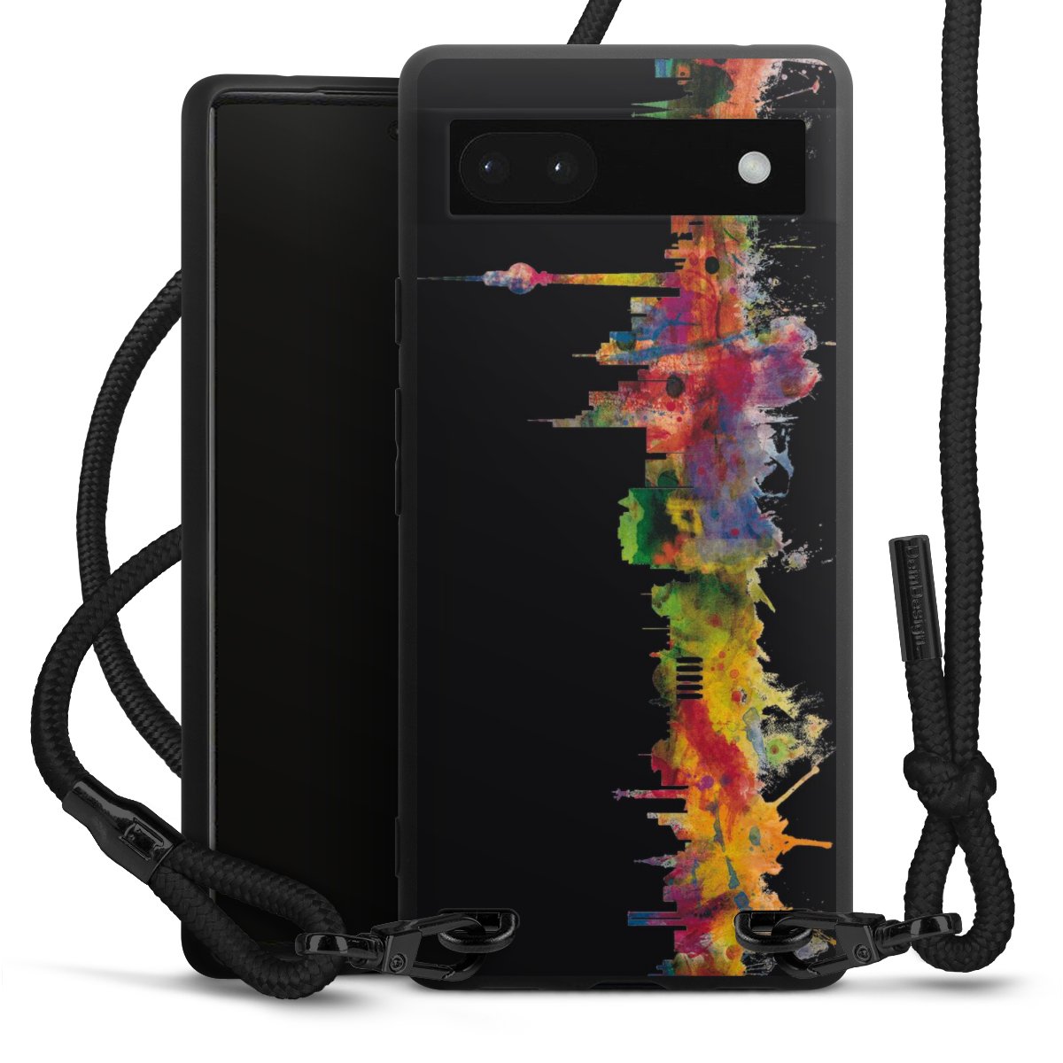 We use the solid direct print process for this phone case, which is why the print area only covers the back and the edge remains unprinted. The case to wear around your neck can be ordered unprinted, fully printed, or partially printed. For your design, either choose one of our exclusive shop motifs or get creative and create your own design, for example with photos and overlays. Design your own personal trend accessory and make an individual statement on the streets!