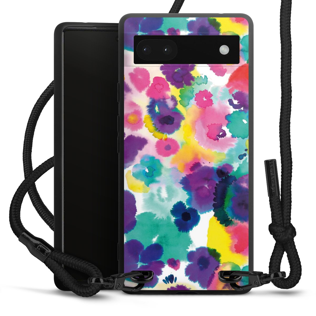 We use the solid direct print process for this phone case, which is why the print area only covers the back and the edge remains unprinted. The case to wear around your neck can be ordered unprinted, fully printed, or partially printed. For your design, either choose one of our exclusive shop motifs or get creative and create your own design, for example with photos and overlays. Design your own personal trend accessory and make an individual statement on the streets!